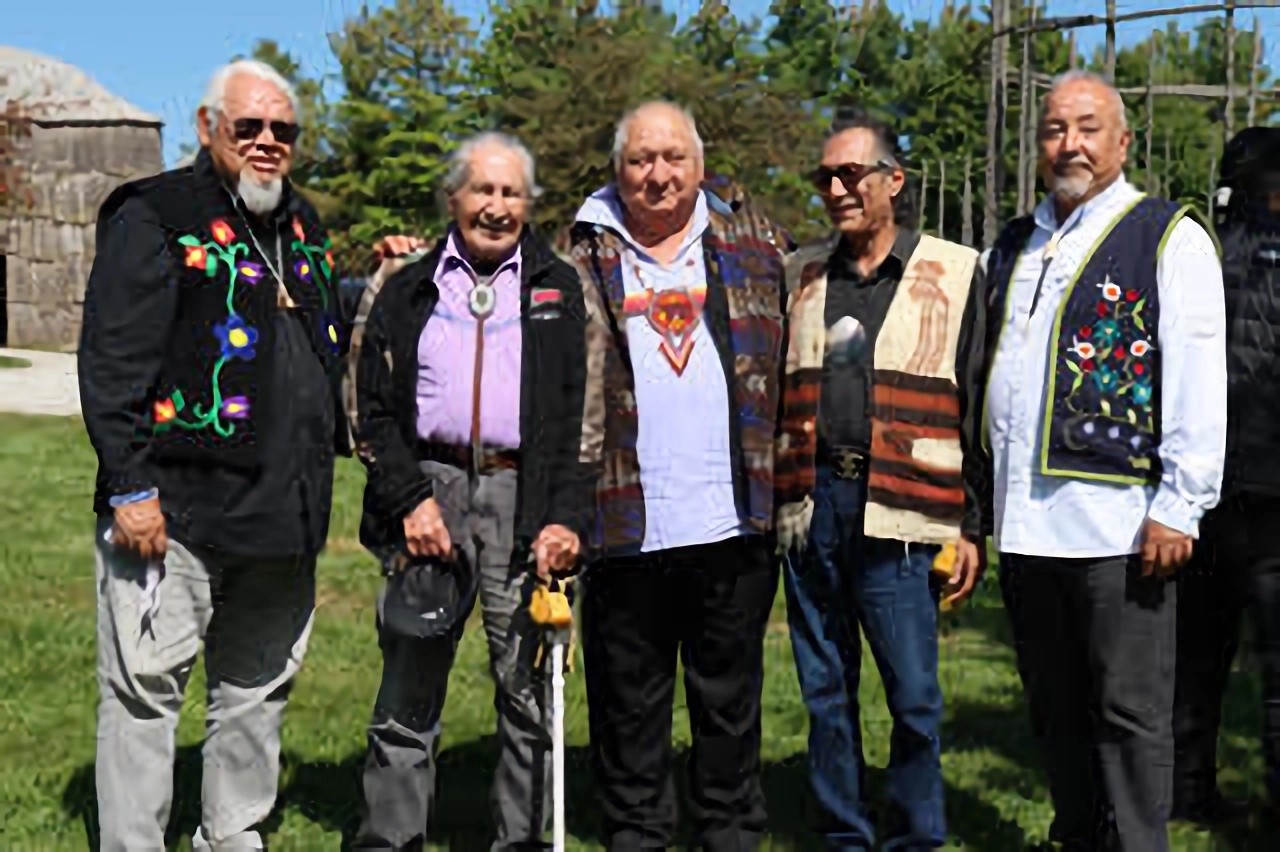 Photo Legend: Left to Right, Rick Hill, Oren Lyons, Tom Porter, Frank Miller and Dan Longboat